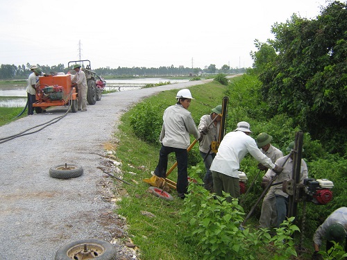 - Dùng máy khoan guồng xoắn Yrb 50M hoặc máy khoan guồng xoắn UKB 12/25.